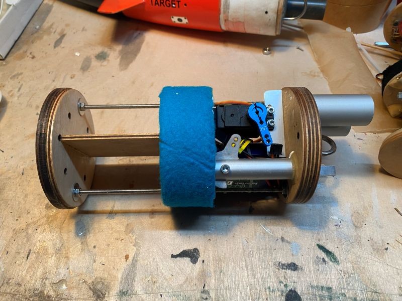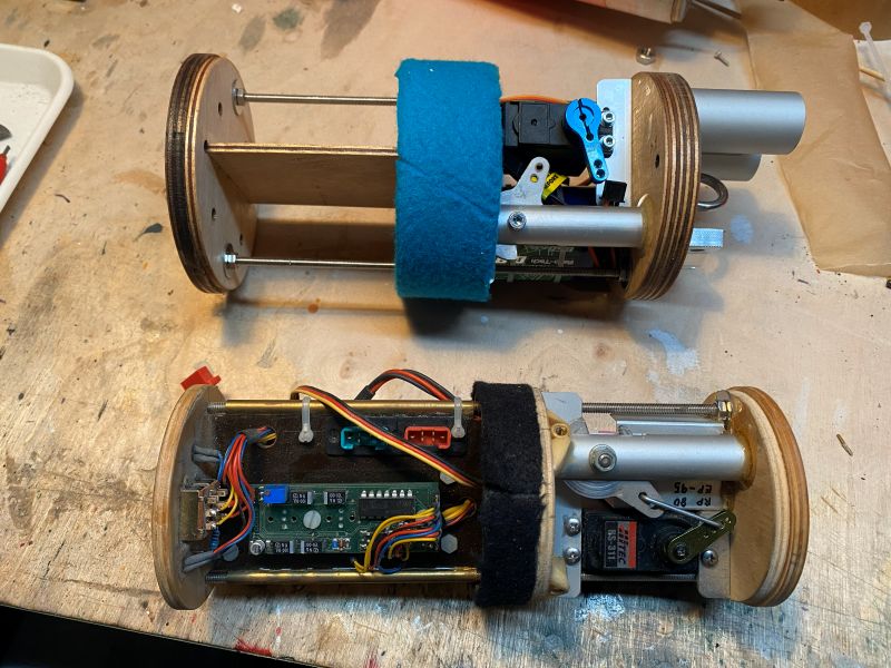 Die Elektroniken (Altimax und Altimax Simply) und andere unerhebliche Kleinigkeiten fehlen noch, aber das Grundgerüst ist fertig, Funktionell habe ich mich da stark an der E-Bay meiner 3" Harpoon orientiert, diese hat bei vielen schönen Flügen immer zuverlässig ihren Dienst getan. Wenn nicht gleich, so sind die Bedingungen dort zumindest ähnlich: - Position in der Spitze - Eigengewicht ist zugleich Trimmgewicht - Serielle zweistufige Bergung Das ganze wird von oben in das Kupplerrohr in der Spitze eingesetzt und stützt sich auf dem oberen Rand ab. Das untere Abteil (im Bild rechts) bietet Platz für den RC Schlepphaken und das (nicht gerade kleine) Servo um diesen zu betätigen, sowie für die beiden 3S LiPo Akkus. Das obere Abteil enthält die Montageplatte für die beiden barometrischen Höhenmesser. Dieses Abteil ist durch Löcher im oberen Bulkhead mit dem Umgebungsdruck innerhalb der Spitze verbunden. An geeigneter Stelle wird die Spitze drei kleine Ventilationsöffnungen nach außerhalb der Hülle haben. Außerhalb, "auf dem Dach" der EBay werden zwei Magnetschalter Platz finden, um die Elektroniken von außerhalb der Raketenhülle mit einem Dauermagneten einzuschalten. Der mittlere Bulkhead dient als gas- und druckdichte Trennung zwischen den beiden Abteilen. Hier sitzt ein 2,5cm Ring aus Phenolrohr der mit Filz beklebt ist. Eine unauffälligere Farbe gabs leider nicht, dafür war der Filz kostenlos. Geschenktem Gaul..... Die Dichtung ist so eng toleriert, das sich die ganze EBay nur mit erheblicher Kraft in das Kupplerrohr schieben lässt. Diese Konstruktion hat schon in der Harpoon die Höhenmesser zuverlässig vor dem Druckstoß der Ausstoßladungen auf der anderen Seite geschützt. Bin tatsächlich am Überlegen, auf seitliche Verschraubungen im Kupplerrohr zu verzichten. Schauen wir mal. Rechtzeitig vor Weihnachten kam auch Bäckchens Paket mit dem gefrästen Pyrorelease an, welches ebenfalls noch auf dem Bergespant Platz brauchte. An dieser Stelle noch einmal vielen lieben Dank dafür, Bäckchen. Die kleinen Löcher sind für die Zuleitungen der Klemmen für die Zünder der drei Ausstoßladungen. Die beiden Behälter werden die Austoßladungen für die Trennung am Gipfelpunkt beinhalten. Ein Behälter Main-Elektronik (Altimax), ein Behälter Backup-Elektronik (Simply). Es wird einen Packsack (Deploymentbag) für den Hauptschirm geben, der an einem Ring hängt, durch den eine dünne Seilschlaufe läuft, welche auf der einen Seite durch den Servohaken und auf der anderen Seite durch den Bolzen im Pyrorelease gehalten wird. Freigabe erfolgt entweder über das Öffnen des servobetätigten Schlepphakens (Altimax) oder durch Freigabe durch Zünden des Pyrorelease (Simply). Das jeweils freie Ende der Seilschlaufe läuft durch den Ring und der Deployment Bag ist frei. Soweit der Plan. So dürfte ich über ein vollständig redundantes, serielles Bergesystem verfügen. Geändert von Kabelmann am 06. Januar 2026 um 18:47 |