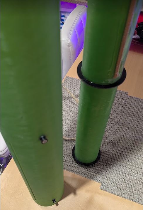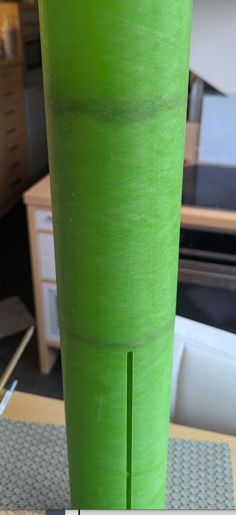 Das Motorrohr habe ich mit Epoxy an den beiden oberen Abstandsringen jeweils oben und unten mit dem Körperrohr verklebt. Um in den Zwischenbereich zu kommen habe ich das Epoxy über die Rail Button Buchse eingespritzt.