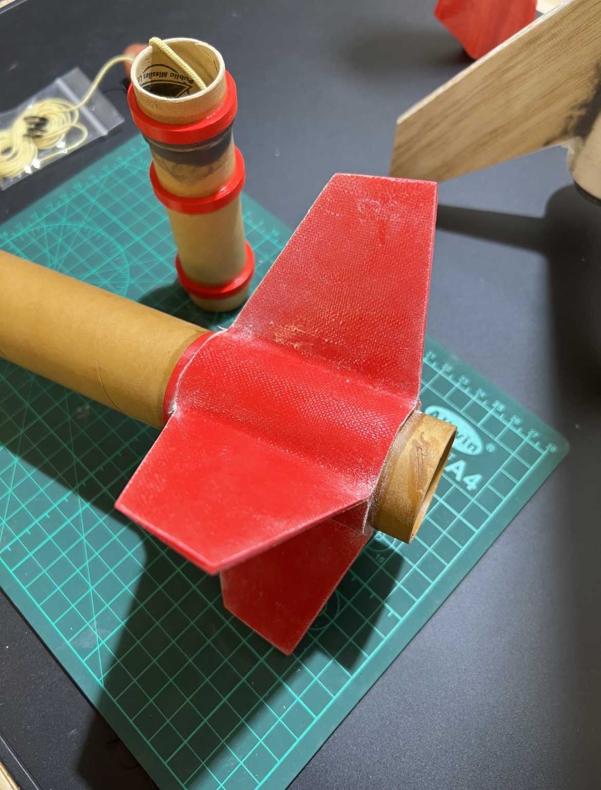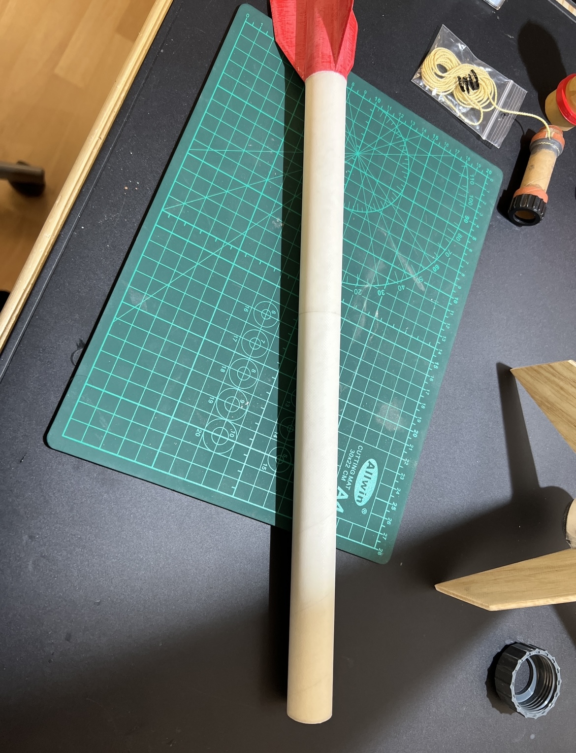 Danke Benni ! Hoffe wir sehen uns wieder auf dem RJD … Kurzes Update … Bau hat begonnen … oberer Teil der Rakete … Finnen sind tip to tip mit Glasfaser belegt … hatte mal einen anderen Härter probiert und das aushärten gestaltete sich ein wenig seltsam … die Haftung auf ASA würde ich so als naja ( grade so ausreichend ) beschreiben … im Verbund sind die Finnen jetzt mega viel stabiler … zieht man aber mit ausreichend Kraft von der Fläche hoch so würde sich das Laminat ablösen denke ich . Habe die Kanten nochmal mir dünnem Cyancrylat bepinselt … ich hoffe es hält dann sicher genug mit filler und Lack … die Hoffnung stirbt zuletzt ;-) Auch mit der Mini Sky Dart habe ich weiter geübt und mal die doch eher dünnen 24mm Rohre mit Glasfaser eingewickelt … dies hat erstaunlich gut funktioniert … bei all den Möglichkeiten das Gewebe auf zu bringen hat am Ende das gerade ansetzen und Stück für Stück „Anmassieren“ mit dem Handschuh bewährt .. immer von einer Seite zur anderen und dann Stück für Stück um das Rohr herum … Es wurde erstaunlich straff und absolut Blasen und Falten frei … Bin wirklich zufrieden für das erste mal … Größere Rohre will ich bald mal mit einem Gewebeschlauch testen … Grüße Marco