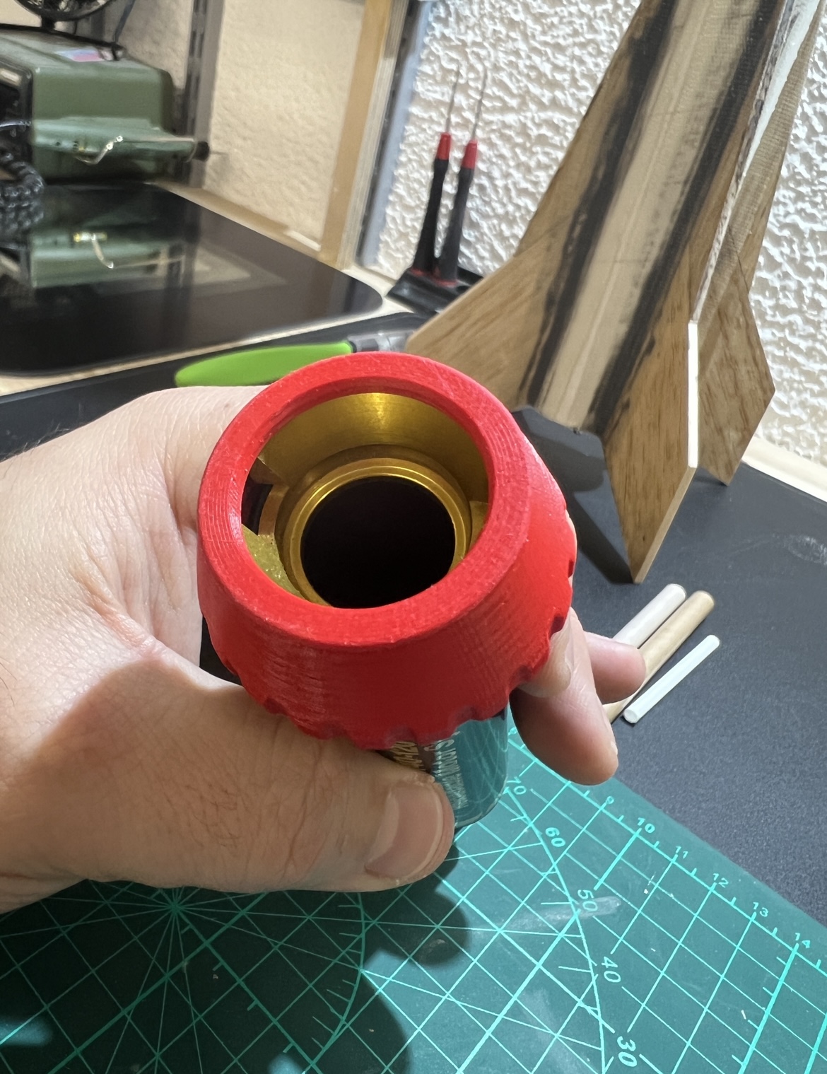 Hat sich ja einiges getan die letzten Tage  Retainer sieht klasse aus! Gut dass er jetzt passt. Bei Gewinden muss ich ab und an ein paar mal rein und raus schrauben, bis es gut läuft. Druckbild sieht auch ziemlich gut aus. Bin gespannt wie das tip to tip aus ASA hält. Und auf den Gewebeschlauch bin ich echt gespannt