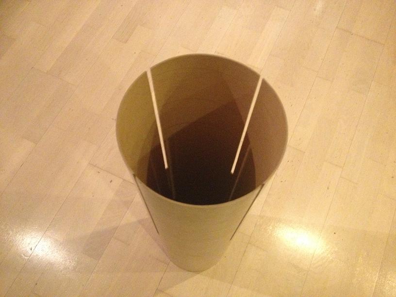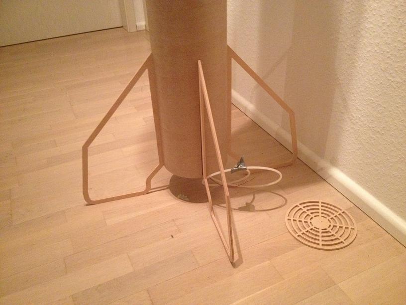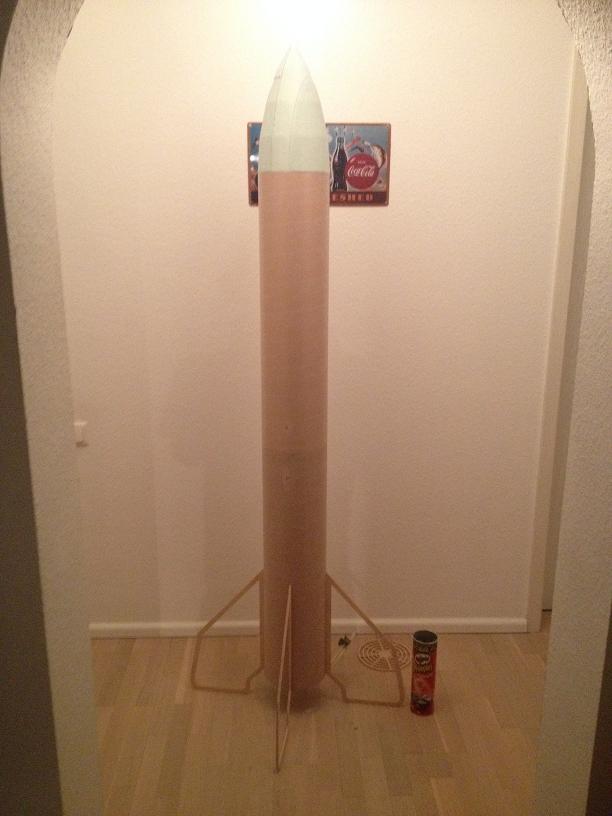 So, das Rohr ist auch geschlitzt: Ich setze hier auf 18mm INOX-Abbrechklingen von Mozart. Die sind durch den Schliff doch wesentlich schärfer als no-name Klingen. Wenn man abrutscht sind die auch gut, da wächst alles wieder echt schnell zusammen. Verarbeite beruflich tausende Klingen am Tag, da macht man seine Erfahrungen Das Rohr passt wie erwartet auch sauber auf die Konstruktion: So schaut das im Ganzen aus, schon imposant, die Chips-Dose dient als Größenvergleich: Gruß Fabian