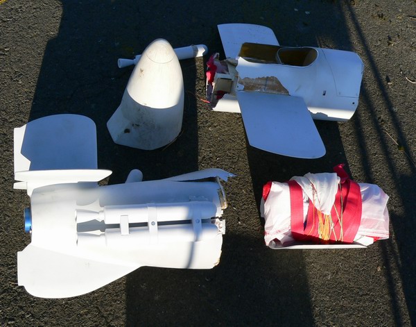 Erstaunlich ist, dass die Flügel und die Spitze, sogar das gesamte Leitwerk nicht abbekommen haben. So gesehen waren es zwei Sollbruchstellen. Na ja, ich gebe es zu, man muß sich so einen Crash doch etwas schön reden. Vielleicht bekomme doch Mut zu einer Reparatur. Nichts desto trotz, es war ein hervorragender Flug gewesen. Mit Bremstriebwerk hätte vielleicht das Schockband gehalten... Ciao, Rolli Folgende Datei wurde angehängt: