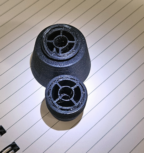 Nach dem Wechsel zu gehärteten Düsen sind selbst die Feingewinde M24x1 sehr präzise und lassen sich nach dem Druck mit einer Zahnbürste und etwas Scheuermilch perfekt nacharbeiten und einpassen. Insgesamt bin ich mit dem Ergebnis jetzt sehr zufrieden.