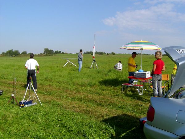 Am Sonntag dann das erwartete schöne Wetter mit eigentlich optimalen Bedingungen für uns Höhenflieger. Aber erst wurden noch die Gleiter geflogen und gleichzeitig die Theodolithen aufgebaut. Dann flogen die S1B und S1F Modelle in den blauen Himmel.