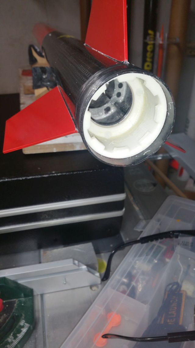 das ist meine eigene Entwicklung. Das System habe ich bereits einige Jahre getestet. Es funktioniert perfekt, auch bei Last. Wenn die Rakete am Fallschirm hängt, ist die Last meist nicht viel größer als das Gewicht des Models. Der Öffnungsschock wir ja durch die Konstruktion aufgefangen. Deine Analyse ist schon gut. Ist in der Tat eine entzünderte und abgeschnittene Revolverhülse. Da habe ich den Zündkanal breiter gefräst, damit man das Kabel ohne Beschädigung einziehen kann. Die Hülsen sind am Ende enorm dick, sodass sie sich nicht durch die Belastung verbiegen. #Don’t Look Up |