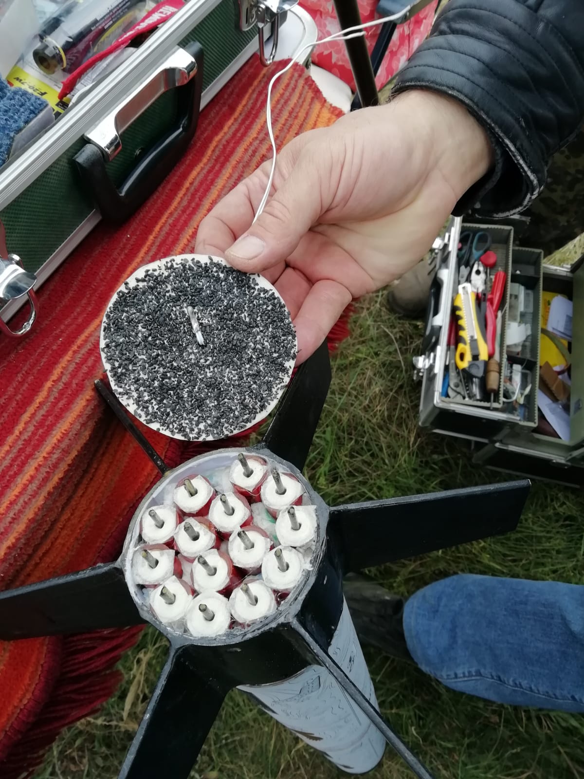 He Alex, ich kann aber auch kleiner....  ! Ich habe noch eine größere ältere Charge von D9-7 Klima-Motoren, welche zwar 2015 erfolgreich in der MEDUSA 3 (damals auf deiner Rampe) geflogen sind, ich bin mir aber nicht sicher ob die jetzt auch noch zuverlässig funktionieren... Zur Sicherheit werde ich noch mal zwei gleiche 48er Booster für die MEDUSA 3 fertigen aber einen davon zum testen "nur" statisch am Boden auf den Prüfstand stellen.....  ! das Papprohr für den Einweg-Booster die Schubplatten werden eingeklebt, die Motoren zum auszählen eingelegt, am Heck werden sie wieder zuverlässig mit diesem Resin Gießharz verschlossen, das hat den Zweck, wenn einer der Motoren ungeplant durchzünden sollte, wird keiner seiner "Nachbarn" von hinten gezündet... Am besten das angemischte Resin in einer kleinen Spitze ansaugen, so lässt es sich sicher und schnell in den hinteren Verschluss der Motoren dosieren...